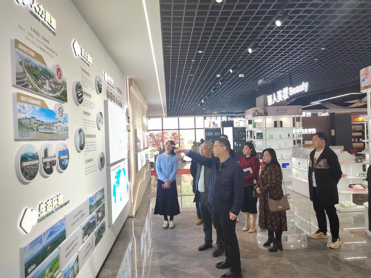 在马哲强等陪同下,张健一行实地参观了黄石临空跨境电商产业园,深入了解园区运营模式、组织架构及跨境电商产业链布局。园区以服务地方经济为导向的数字化、国际化发展理念,以及对外语类人才的迫切需求,为后续合作奠定了实践基础。吴昊详细介绍了园区在跨境物流、企业孵化、数字化平台建设等方面的成果,并强调:“跨境电商涉外人才是园区企业开拓国际市场的核心痛点,亟需高校赋能。”