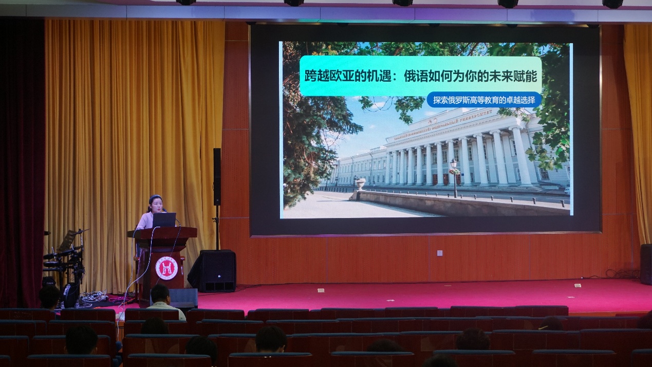 范楚舒博士巧妙运用师生问答互动的方式,打破同学们对俄罗斯的刻板印象。她通过一系列精彩绝伦的视频,带领同学们深入领略俄罗斯特色文化,了解俄罗斯高等教育的不同成就。彼得大帝、叶卡捷琳娜二世等伟人故事,映射了俄罗斯波澜壮阔的历史剪影;妇女节、知识节等具有俄罗斯特色的节日,反映了俄罗斯对社会发展、文化传承和个人成长的认可和鼓励;俄语诗歌《假如生活欺骗了你》,体现了从语言到思维的俄式艺术魅力。