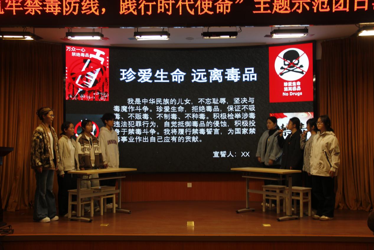 活动中,中英文朗诵《禁毒有我》以铿锵有力的语调,发出了青年学子拒毒防毒的坚定宣言;禁毒改编版合唱《New boy》用轻快昂扬的旋律传递“健康人生、绿色无毒”的青春理念;情景剧《别毁了我的梦》以沉浸式演绎,真实再现毒品对青春理想的摧毁与侵蚀,为在场师生带来强烈的心灵震撼;手势舞《珍爱生命·远离毒品》以整齐划一的动作,生动传递了禁毒理念,让防毒意识深入人心。整场活动形式多样、内容充实,使禁毒知识与防毒意识真正根植于师生心间。