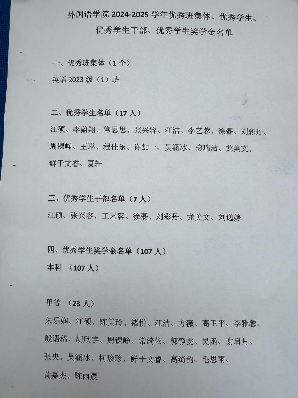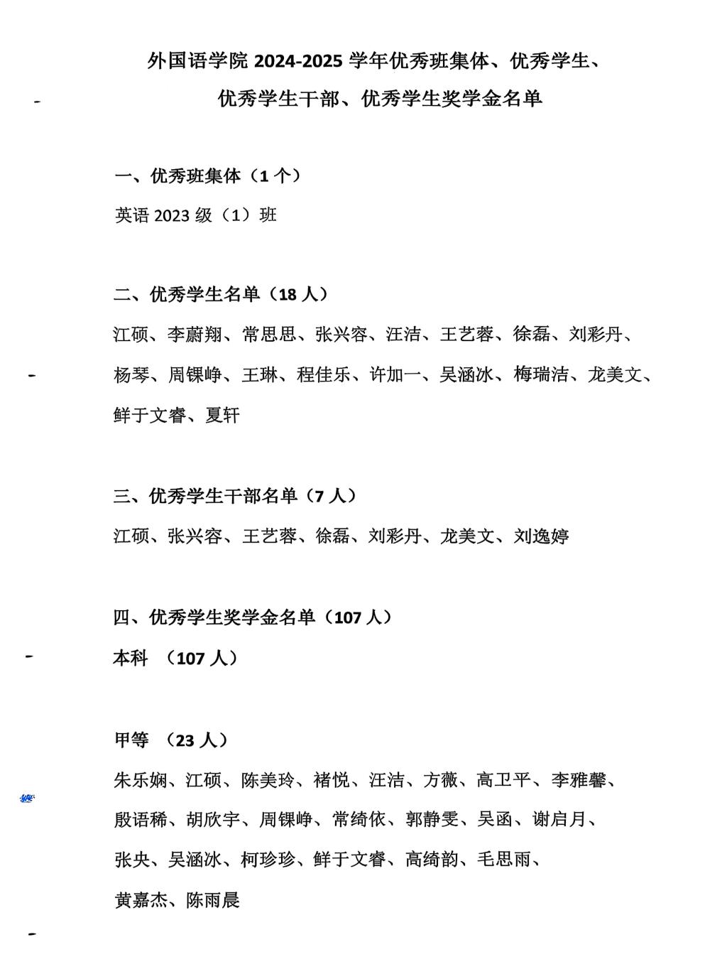 william英国中文2024-2025学年优秀班集体、优秀学生、优秀学生干部、优秀学生奖学金名单