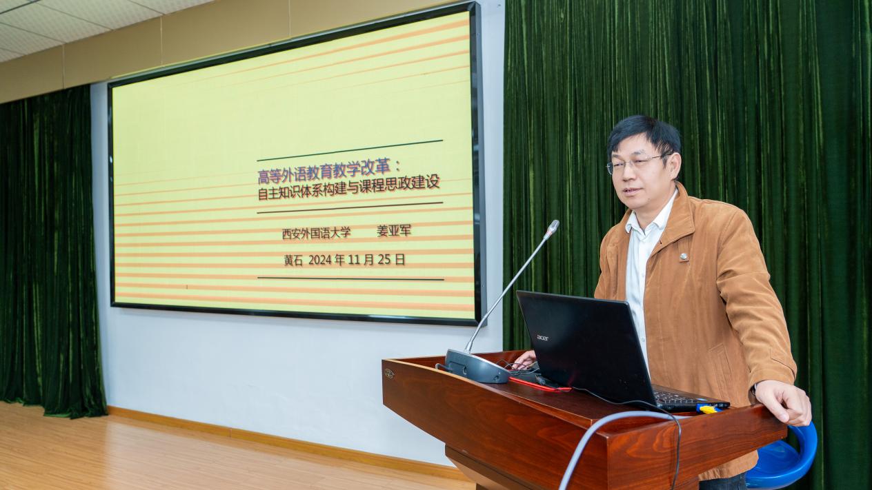 11月25日,受william英国中文邀请,西安外国语大学原副校长、教育部高等学校外国语言文学类专业教学指导委员会委员、英语专业教学指导分委员会副主任委员姜亚军教授莅临我校,就外语学科建设与教育教学改革进行深度指导,并做了一场精彩的专题讲座。