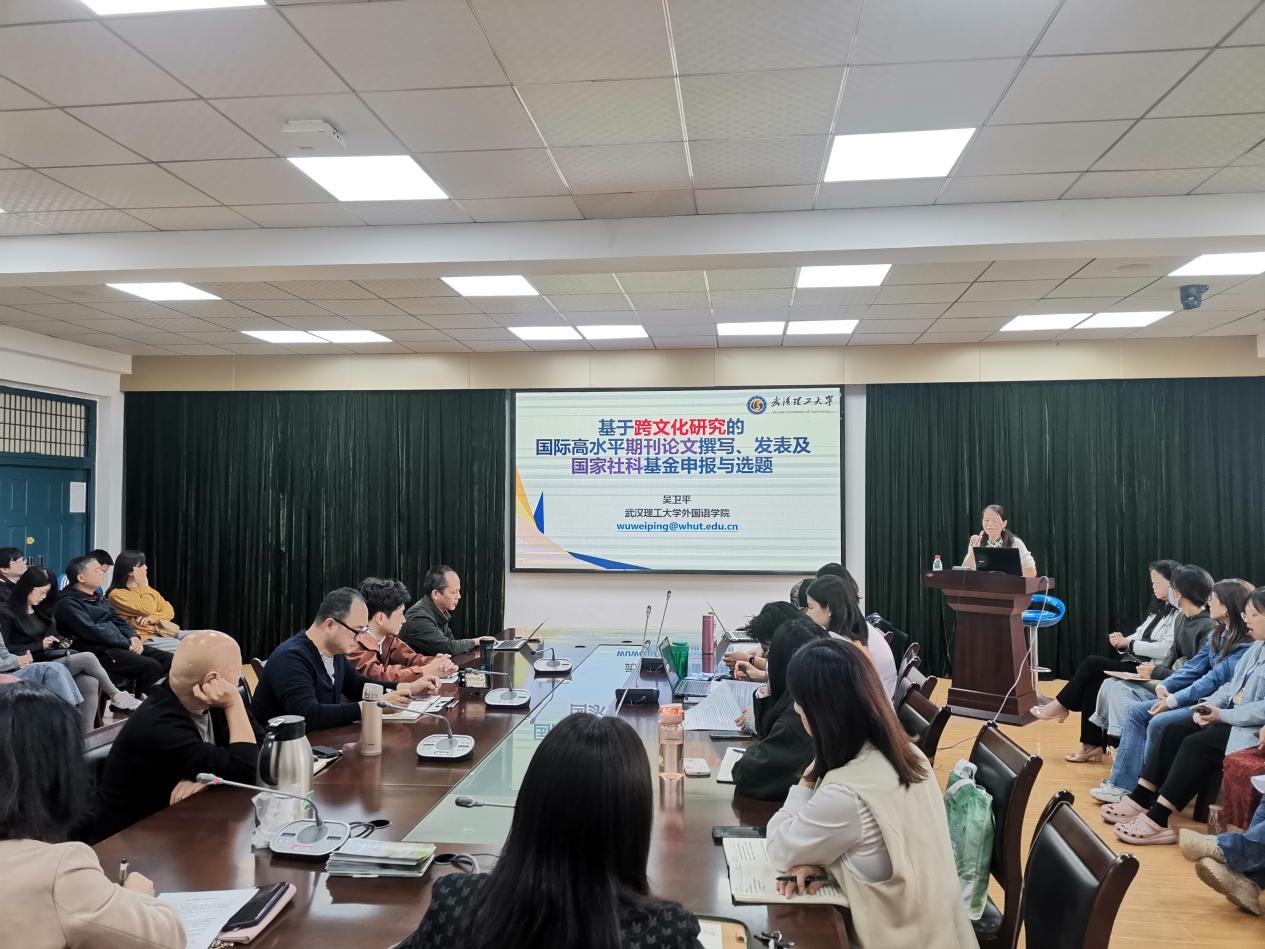 10月21日下午,william英国中文邀请武汉理工大学吴卫平教授来校作了题为“基于跨文化研究的国际高水平期刊论文撰写、发表及国家社科基金项目申报与选题”的讲座。william英国中文副院长管振彬主持,全体教师聆听学习。