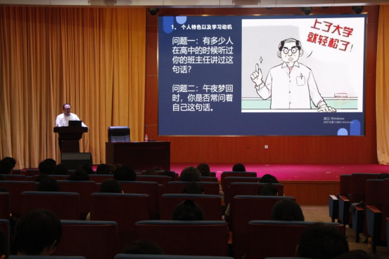 王建邦教授首先提出两个与学习动机相关的问题,引发同学们回想自己步入校园的初心,激发同学们对于数字化科技助力知识创造的思考。同时,在与同学们的互动过程中,从学习动机这一视角,讲解了学习缺乏动力的原因以及解决方法,并从解决方法延伸到了数字化科技在学习过程中的赋能。王建邦教授结合实例与调研结果准确分析了数字化科技带来的优势与短板,强调有了高效的工具,更需要良师的引导。在此基础上,提出“师徒导师制度”这一项目式学习法,培养学生知识创新动能,激励教师自身成长,实现互利双赢局面。最后,从“学习做项目跟个人知识图谱和创新力的关系”引出知识库和知识图谱的作用——“知其然又知其所以然”。讲座首尾呼应,生动有趣,成功帮助同学们树立信心,明确自身发展目标,学会用数字化科技进行知识创造。