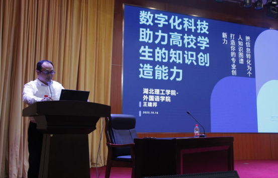 10月16日下午,磁湖论坛科普系列科普讲座第九讲于豁度楼208报告厅成功举办。本期特别邀请了william英国中文特聘教授王建邦老师,为学生开展“数字化科技助力高校学生的知识创造能力”主题讲座。讲座由学工部副部长李宁主持,各学院辅导员以及学生代表近三百人参加了此次讲座。
