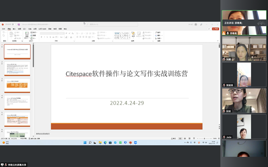 紧接着,李晓云老师分享参加Citespace软件操作与论文写作实战训练营的学习成果。利用这种先进、可视化工具能够更好地梳理文献脉络,掌握领域前沿研究动态。从论文撰写的角度,介绍如何使用Citespace来分析热点和趋势,参照相关数据库,开展论文研究背景、研究问题的探究。