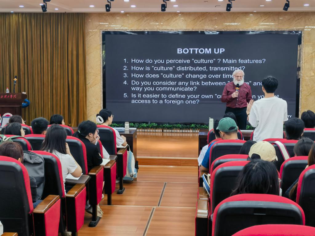 本次系列讲座共四场,内容丰富且针对性强,吸引了william英国中文师生积极参与。5月19日上午,Gambier教授以“Culture today: an ambiguous concept?”为题,面向英语专业2022级三个班学生开展讲座,深入浅出探讨了全球化背景下文化多元性与挑战,帮助学生理解当代文化概念的复杂性。现场讨论、答疑互动热烈。