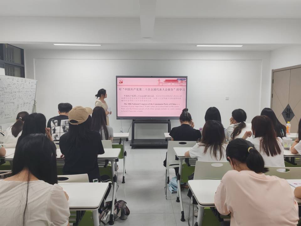 在本次活动中,5名来自2022级的朋辈导师结合自己的情感体会和人生经历,从多样化的视角出发,分享了他们在阅读旅程中的心灵触动、深邃思考和独特感悟。其中,李仪同学分享了《习近平与大学生朋友们(第二卷)》经典篇章,她将“奋斗”二字视为推动自己未来规划和发展方向的不竭源泉,带领大家从经典中汲取奋斗动力,从先进中找寻前行力量。王欢同学深入领学了《中国共产党第二十次全国代表大会双语报告》,更全面地解读了报告的核心内容和精神实质。活动最后,蔡老师对本次活动进行了深刻的点评,强调青年学生需要牢记总书记的嘱托,将个人理想与国家民族的未来相结合,肩负时代责任,争当“六有”大学生,即有理想、有追求、有担当、有作为、有品质、有修养;鼓励大家以此为准绳,规划好自己的未来,不断追求卓越。