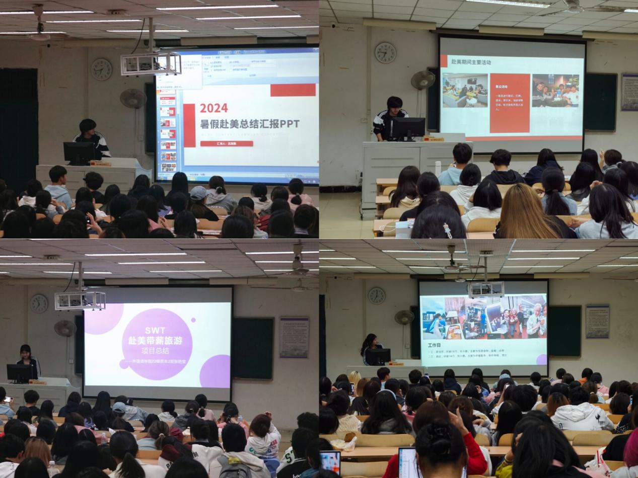 分享会中,两位同学还从他们赴美期间的工作内容和主要活动等方面用幽默诙谐的语言向全体新生讲述他们在美充实而又丰富的生活。该经历不仅增强了自身的英语交际水平,也让他们领略到了更加广阔的世界,这也将成为他们人生中的一笔宝贵财富,为未来增添更丰富的人生履历。