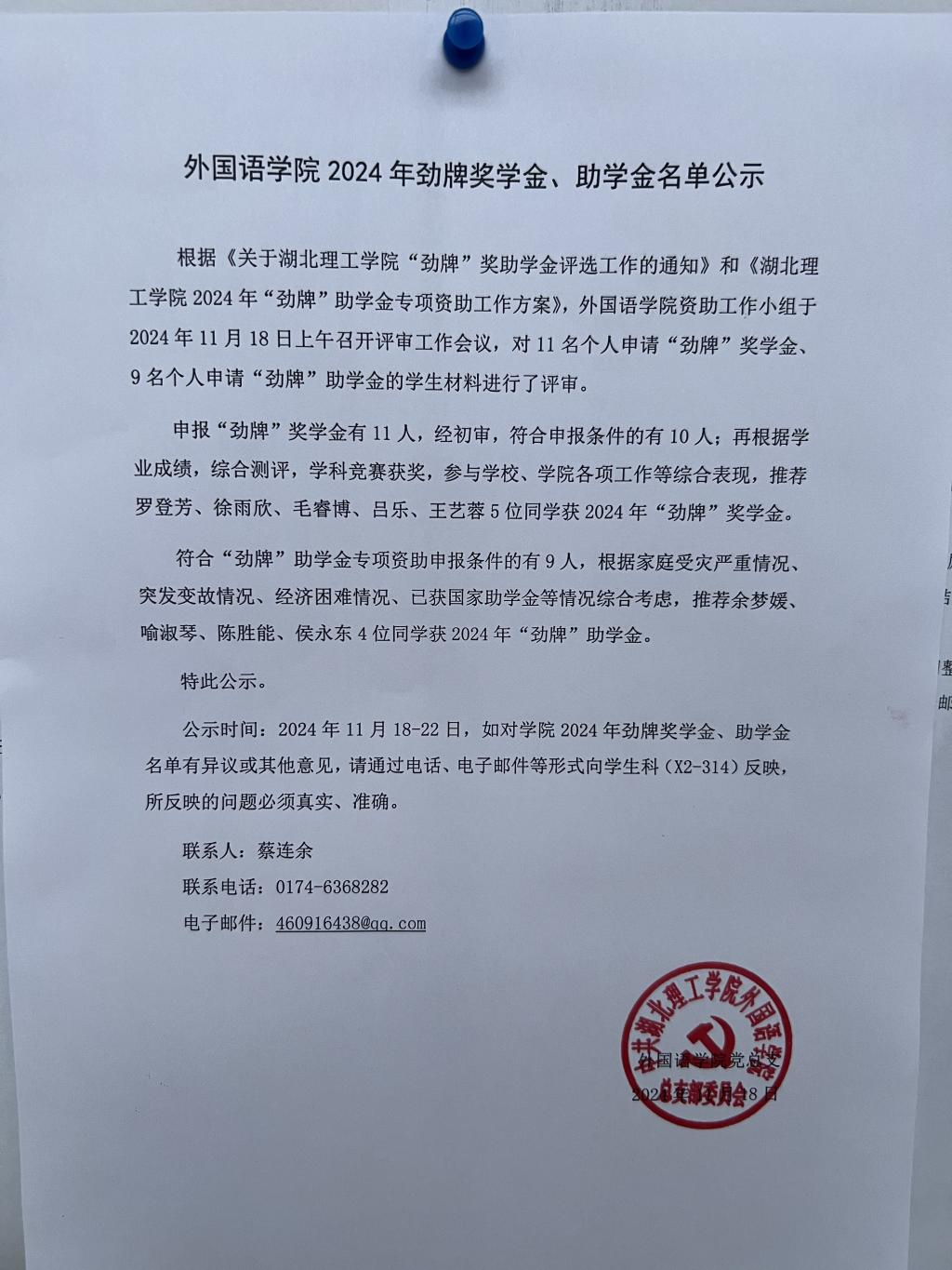 william英国中文2024年劲牌奖学金、助学金名单公示