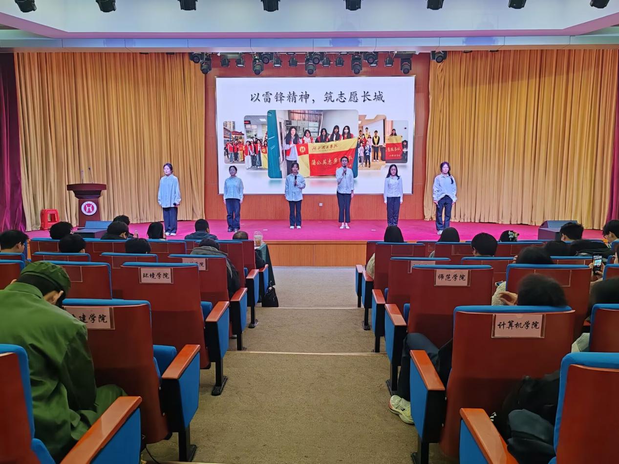 活动在全体齐唱团歌和重温入团誓词中拉开帷幕,铿锵有力的誓言激发了在场青年的爱国热情。朗诵节目《以雷锋精神,筑志愿长城》,诠释了雷锋精神对志愿服务的深远意义。情景剧《雷锋日记》,让观众仿佛穿越时空,与雷锋同志一同经历那些温暖人心的瞬间,深刻感受雷锋精神的魅力。手势舞《学习雷锋好榜样》整齐划一、充满活力,以独特的艺术形式传递着向雷锋学习的热情。小品《雷锋侠的奇妙周末》则以幽默诙谐的方式,讲述了当代大学生在周末践行雷锋精神的有趣经历,让大家在欢声笑语中领悟到雷锋精神就在身边,人人都可以成为“雷锋侠”。合唱节目《雷锋》将活动推向高潮,激昂的歌声唱出了同学们对雷锋同志的崇敬之情,也表达了他们传承雷锋精神的坚定决心。