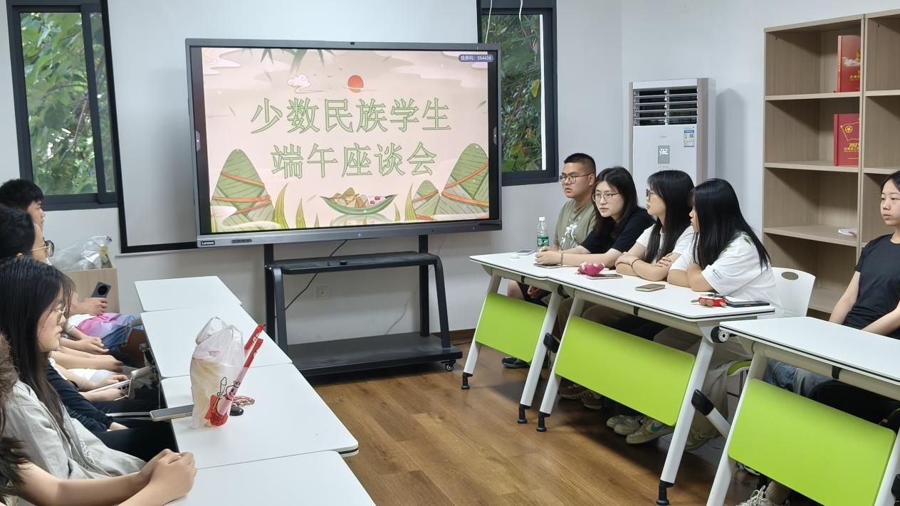 互动环节中,土家族、壮族、苗族、回族、布依族、满族等少数民族学生代表依次分享成长故事。他们有的畅谈校园生活感悟,倾诉学业发展困惑;有的提出优化民族特色活动的建议;还有的热情分享本民族端午传统习俗,让现场充满文化交融的温馨氛围。座谈会前,大家一起观看了海外华人端午节丰富多彩的文化活动。座谈会后,大家一起分享了端午节时令粽子。