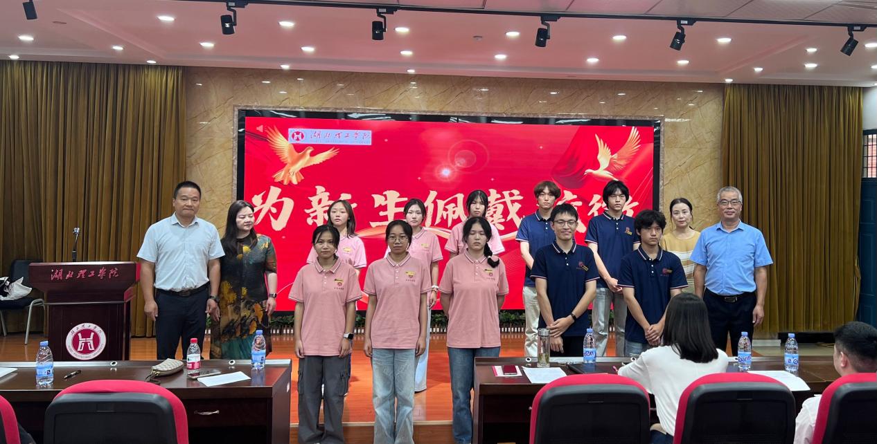 学院领导还为10位新生代表佩戴校徽,并寄予开启大学新篇篇的美好期许。