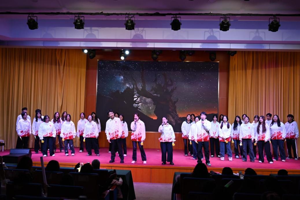学生们的表演形式多样、内容丰富,涵盖歌曲、舞蹈、情景剧、朗诵、小品等多种艺术门类。舞蹈《pookie》轻盈灵动,尽显青春活力;小品《302生存战》《时间都去哪了》幽默风趣兼具教育意义;朗诵《新年的钟声》情感真挚,引人深思。尤其是最后登场的大合唱《夜空中最亮的星》,歌声嘹亮、情感饱满,深深打动了在场的每一位师生。