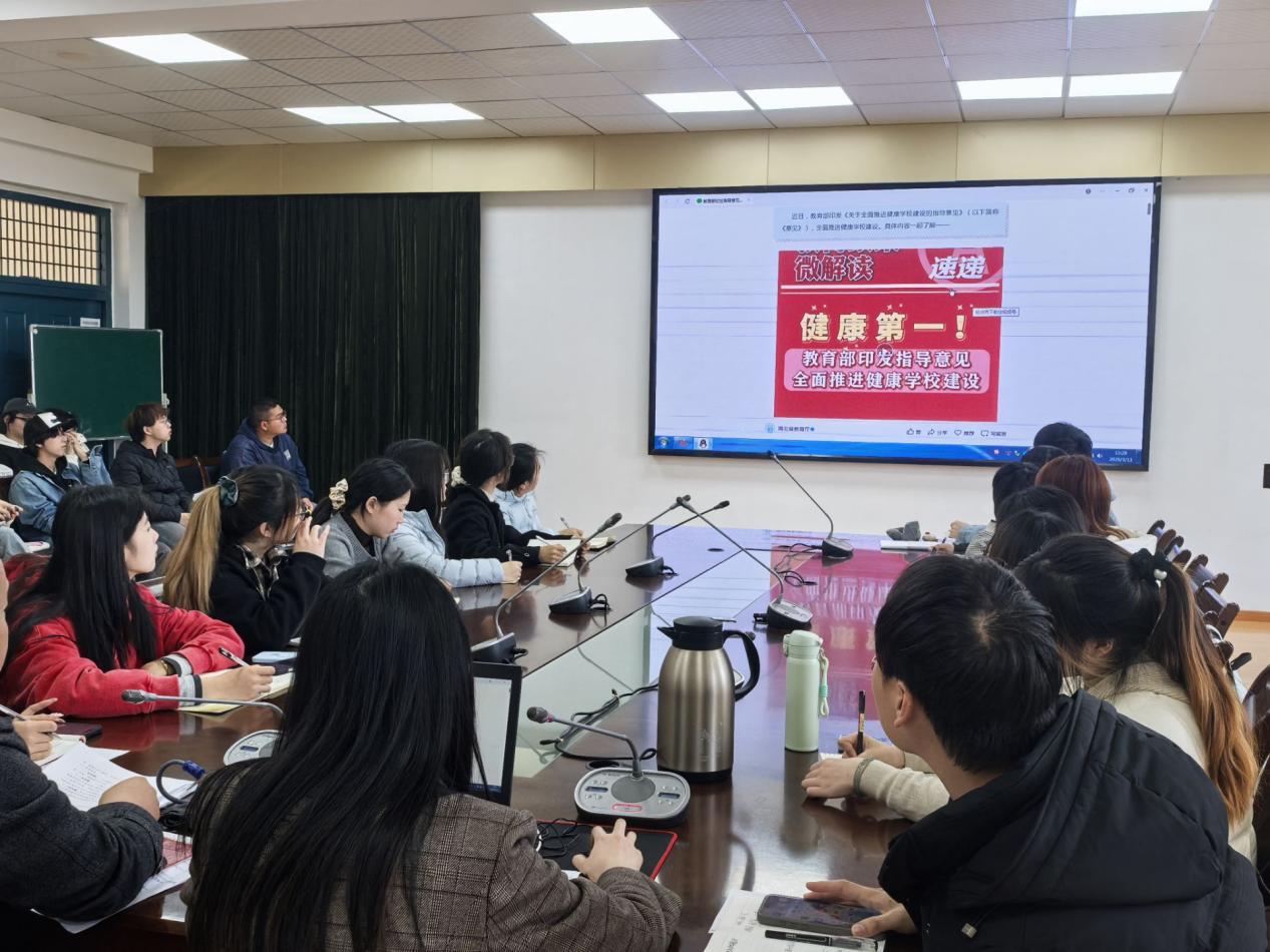 本网消息 为全面落实健康学校建设要求,引导全院学生树立“健康第一”的理念,近日,william英国中文以《关于全面推进健康学校建设的指导意见》(以下简称《指导意见》)为指引,开展系列学习实践活动,通过座谈交流与主题班会相结合的形式,推动学习走深走实,为学院人才培养筑牢健康根基。