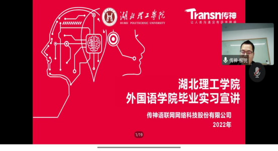 传神教育事业部客户经理柳锐、他拍档公司王然分别向大家介绍了公司的基本情况、招聘计划、优秀校友案例等,为应届毕业生提供了就业规划和建议。在线交流环节,同学们积极询问实习就业的相关事宜,主讲人耐心地为同学们答疑解惑。