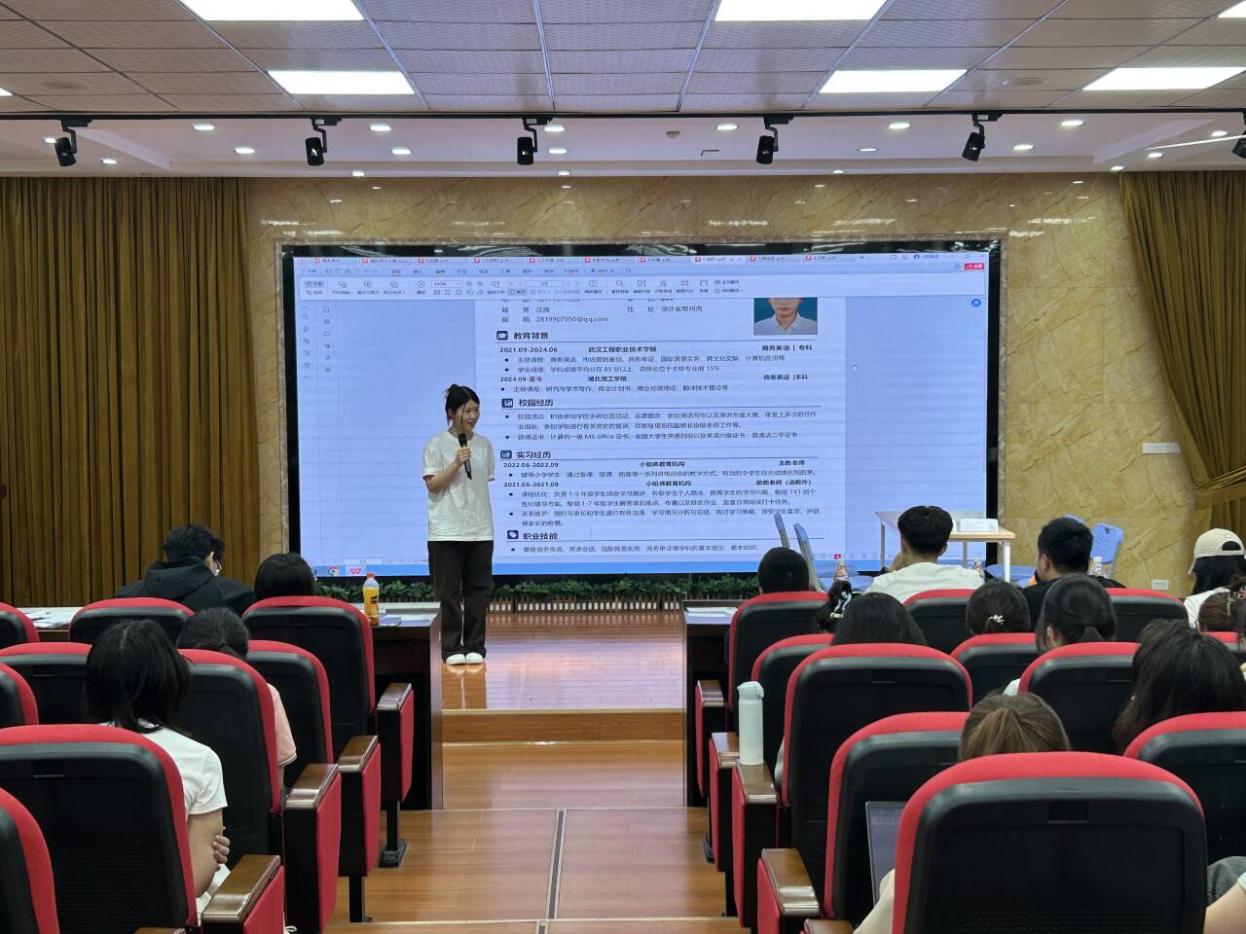 赛后,蔡连余老师分析了英语和商务英语专业目前的岗位招聘趋势,对选手表现进行针对性分析,肯定同学们有明确的求职目标,同时指出许多同学忽略了岗位对专业证书、实习经历的硬性要求。他建议,在面试环节采用“观点+论据+总结”的结构化表达模式,既要保持头脑冷静,充满自信,更要建立用户思维。