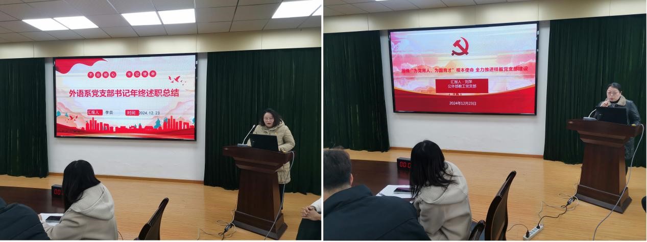 博士们重点汇报了他们在科研工作中的思考路径,成果产出情况以及实践经验,并对下一年度科研进行规划。教研室主任详细汇报了本年度教研室日常管理、教学质量监控、教学改革、专业建设、人才培养方案修订等方面的成效以及迎接2025年本科审核评估工作的开展情况。党支部书记围绕落实全面从严治党责任、支部建设、党员教育管理、党风廉政建设等方面进行述职,查摆了存在的主要问题和不足,提出了具体整改措施。