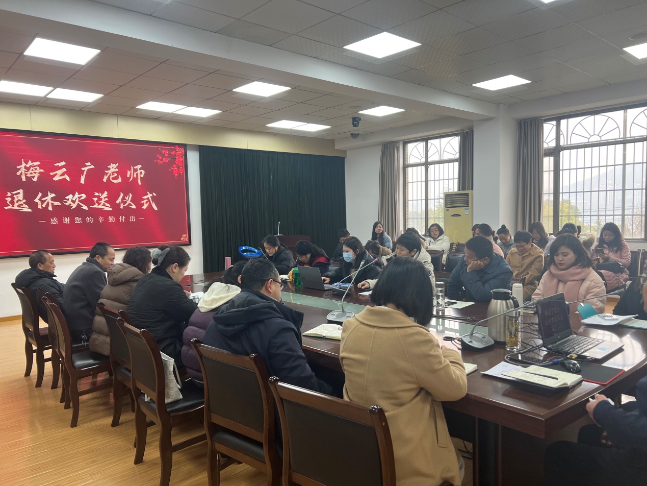 教师代表们一一发言,深情地回顾了与梅老师共事的点点滴滴。从梅老师严谨踏实的工作态度,到无私奉献的高尚情怀,再到对同事们的真诚帮助,每一个细节都让人难以忘怀。教师代表们向梅老师表达了最真挚的感谢与最美好的祝愿,祝福梅老师退休后身体健康、生活幸福,享受更多属于自己的美好时光。