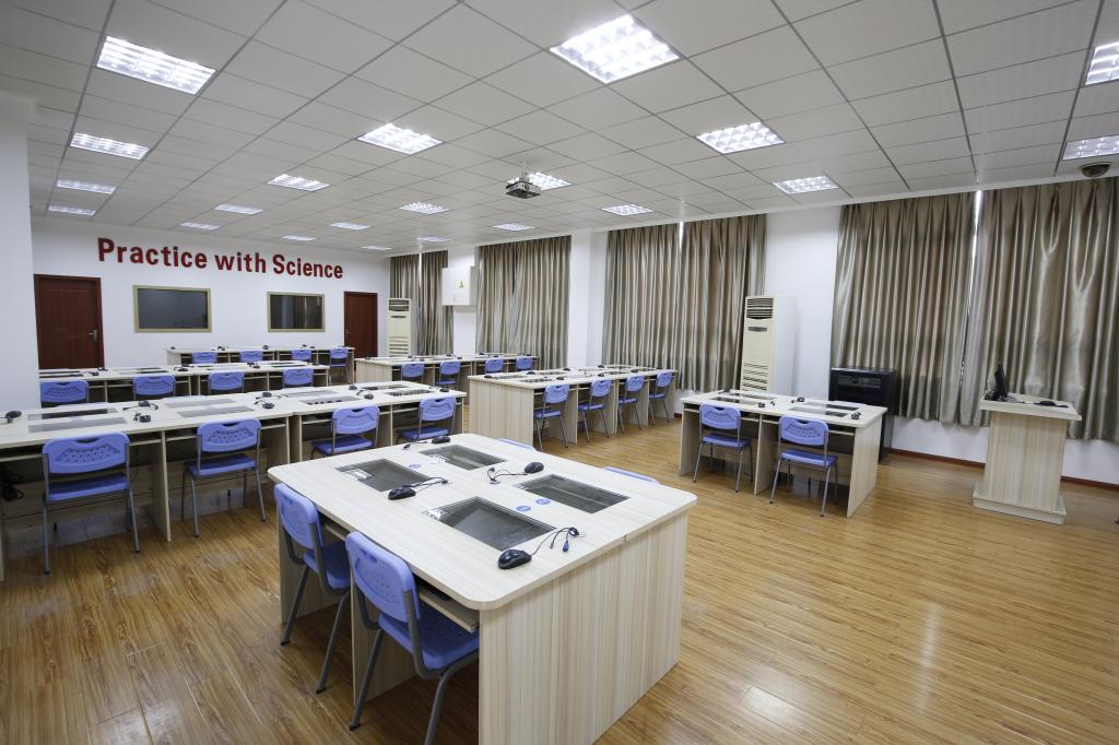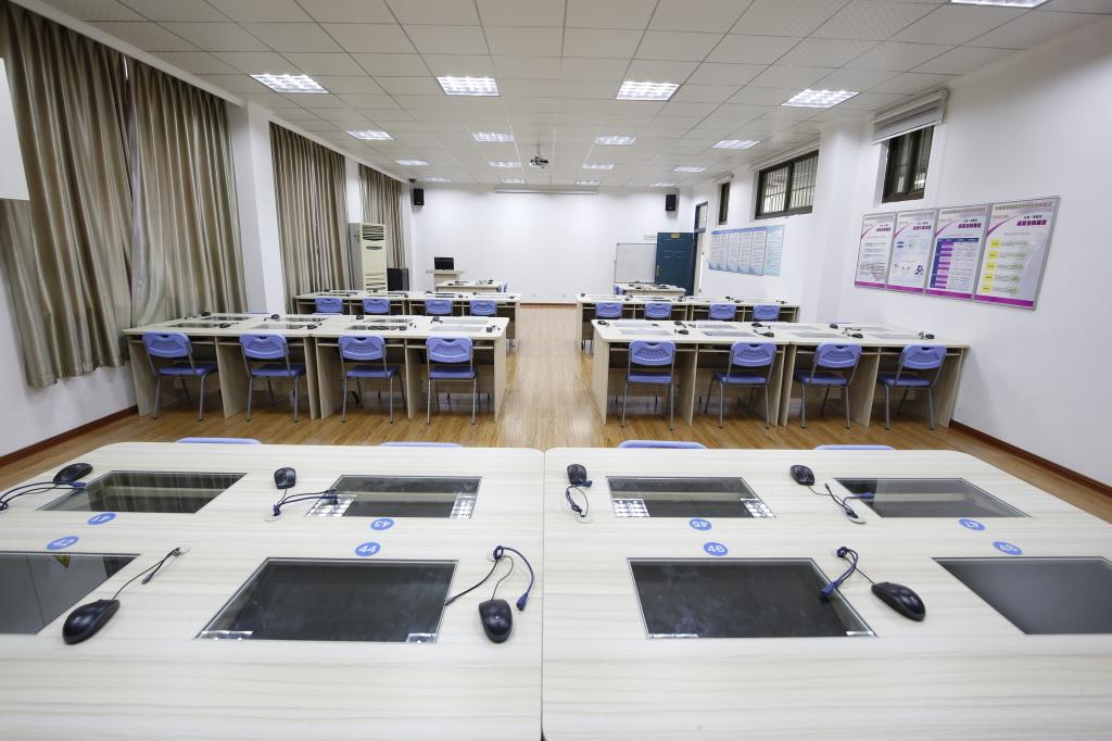 商务技能实践实训室位于X2楼302室, 学生座位数为50个,同时均配有电脑,构成一个小型网络环境,采用教师主控示范性教学和学生基于商务实训软件平台开展的国际贸易实训相结合的方法,使教学与实践紧密结合。学生在过程中能借助实训软件平台完成国际实务型单据、表样、流程的操作。