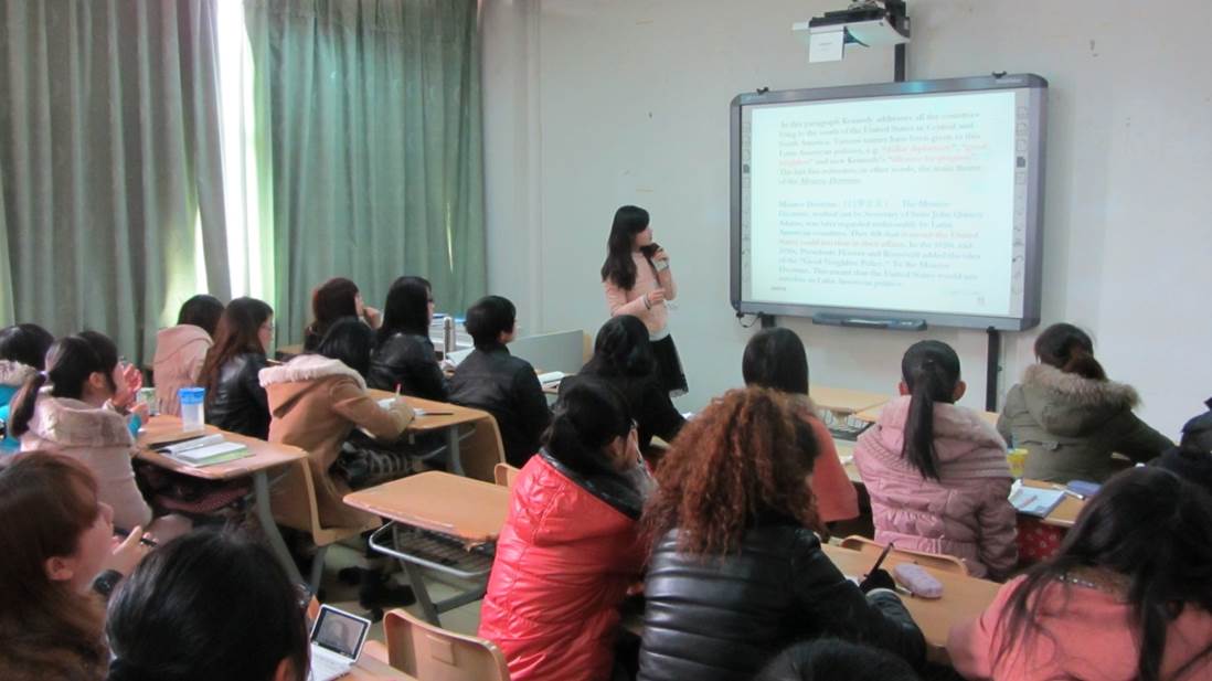 活动型视听讨论室共有2间,可供100余学生开展学习实践活动。讨论室分布在X2的四楼(405,417,)总面积130平方米的。配备有电子白板和电脑中控设备,适用于小班视听讨论、口语教学、小语种教学、语言综合实践活动,以及教师面授指导等。同时也为英语读书俱乐部、英语文化沙龙、英语报纸编写、英语演讲与辩论实践活动的开展提供了场所。